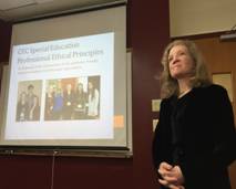 Dr. Elizabeth Finnegan from the School of Education introduced the history of U.S. special education policies and the shared values of U.S. special education communities. Today, schools in the U.S. must provide disabled students with appropriate access to the general curriculum and effective instructional support. The School nurtures students to become familiar with the system and possess the knowledge, skills and the compassion required to help special needs students, in addition to doing research and